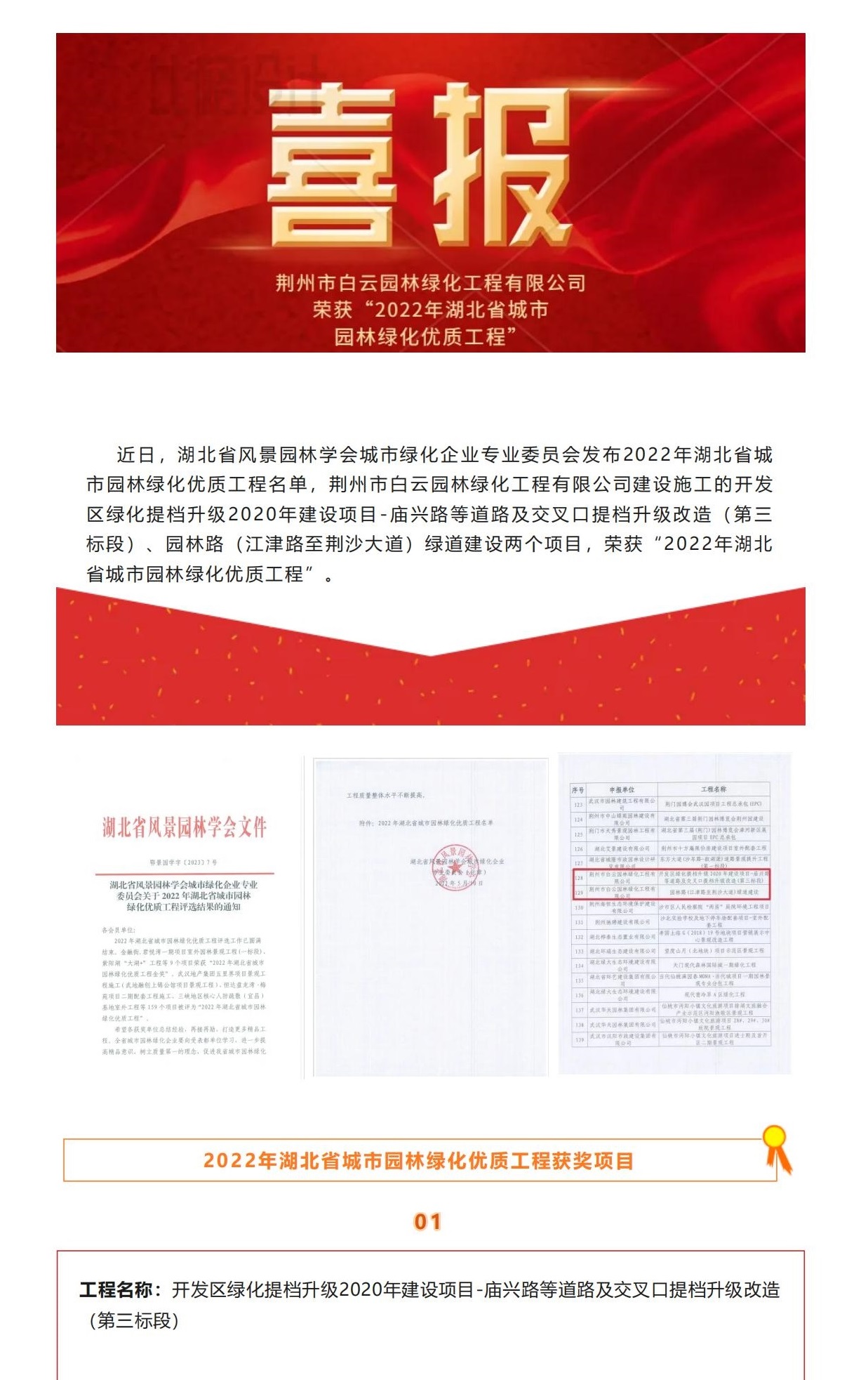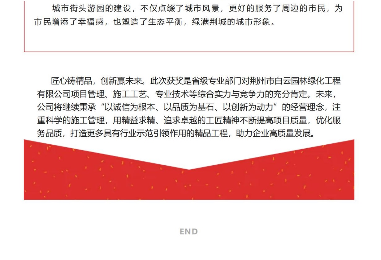 喜報(bào)|白云園林榮獲湖北省風(fēng)景園林學(xué)會(huì)優(yōu)質(zhì)工程獎(jiǎng)項(xiàng)